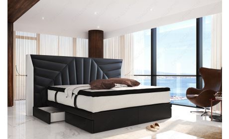 Boxspringbett Monaco mit Stoffbezug, LED-Beleuchtung und 4 Schubladen