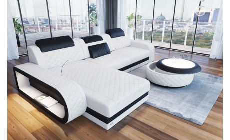 Bei dieser Version werden alle unmittelbar beanspruchten Teile, wie die Sitzflächen und Rückenlehnen, mit echtem italienischen Rindsleder bezogen. Bei diesem Material handelt es sich um ein hochwertiges Leder, welches vor allem wegen seiner schönen Narbung und seiner Weichheit von vielen Polstermöbel Herstellern benutzt wird. Um Ihnen gleichzeitig einen attraktiven Preisvorteil zu ermöglichen, werden bei dieser Bezugsvariante die nicht unmittelbar beanspruchten Teile, wie z.B. die Rückseite, Seitenteile oder bodennahe Zierstreifen und Armlehnen, durch ein farblich passendes „Soft Life Premium" Kunstleder ergänzt (Oberfläche 100% Polyurethan, Grundgewebe 100% Baumwolle).