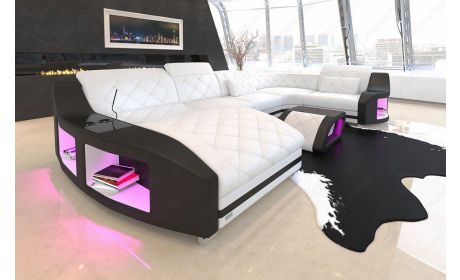 Das Mini XXL Ledersofa Catania vereint moderner Stil und maximalen Komfort auf engstem Raum und bietet damit die perfekte Lösung für Designliebhaber mit begrenztem Platz. Schon beim ersten Blick fällt die großzügige U‑Form ins Auge, die durch eine Ottomane, flexibel links oder rechts platzierbar, zusätzliche Entspannungsmöglichkeiten eröffnet.