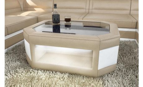 Die Wohnlandschaft Mezzo Materialmix mit LED präsentiert sich als exklusives Designerstück, das stilistisches Bewusstsein mit durchdachtem Komfort vereint. In großzügiger U‑Form gestaltet, bietet dieses Sofa großzügige Sitzflächen und eine weitläufige Ottomane, die einladend zum Entspannen einladen. Besonders wirkt die integrierte LED-Beleuchtung mit Farbwechsel, die über eine Fernbedienung steuerbar ist und für ein stimmungsvolles Ambiente sorgt – ein echtes Highlight in modernen Wohnräumen.