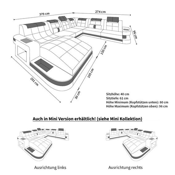 Mit dem Design Wohnlandschaft Wave XL mit LED holen Sie sich ein modernes Designersofa in Ihr Wohnzimmer, das Komfort, Stil und praktische Funktionen harmonisch vereint. Die großzügige Sitzfläche, eine angenehme Sitzhöhe und die abgestimmte Polsterung sorgen dafür, dass Sie stundenlang bequem sitzen oder entspannt liegen können. Gleichzeitig setzen klare Linien, eine markante Formensprache und die eleganten Bezüge ein starkes optisches Statement. Je nach Ausführung profitieren Sie von integrierter LED-Beleuchtung, praktischen Ablagen oder einer komfortablen Schlaffunktion, die das Sofa im Handumdrehen in eine zusätzliche Liegefläche verwandelt. So wird das Sofa zum zentralen Treffpunkt für Familie und Freunde, an dem Filmabende, Spiele oder Gespräche erst richtig gemütlich werden. Dank der hochwertigen Verarbeitung und pflegeleichten Materialien lässt sich das Möbelstück mühelos in Ihren Alltag integrieren und bleibt Ihnen bei richtiger Pflege viele Jahre erhalten.
