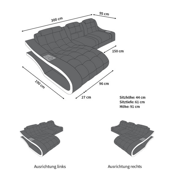 - 1x Ecksofa Elegante L Form