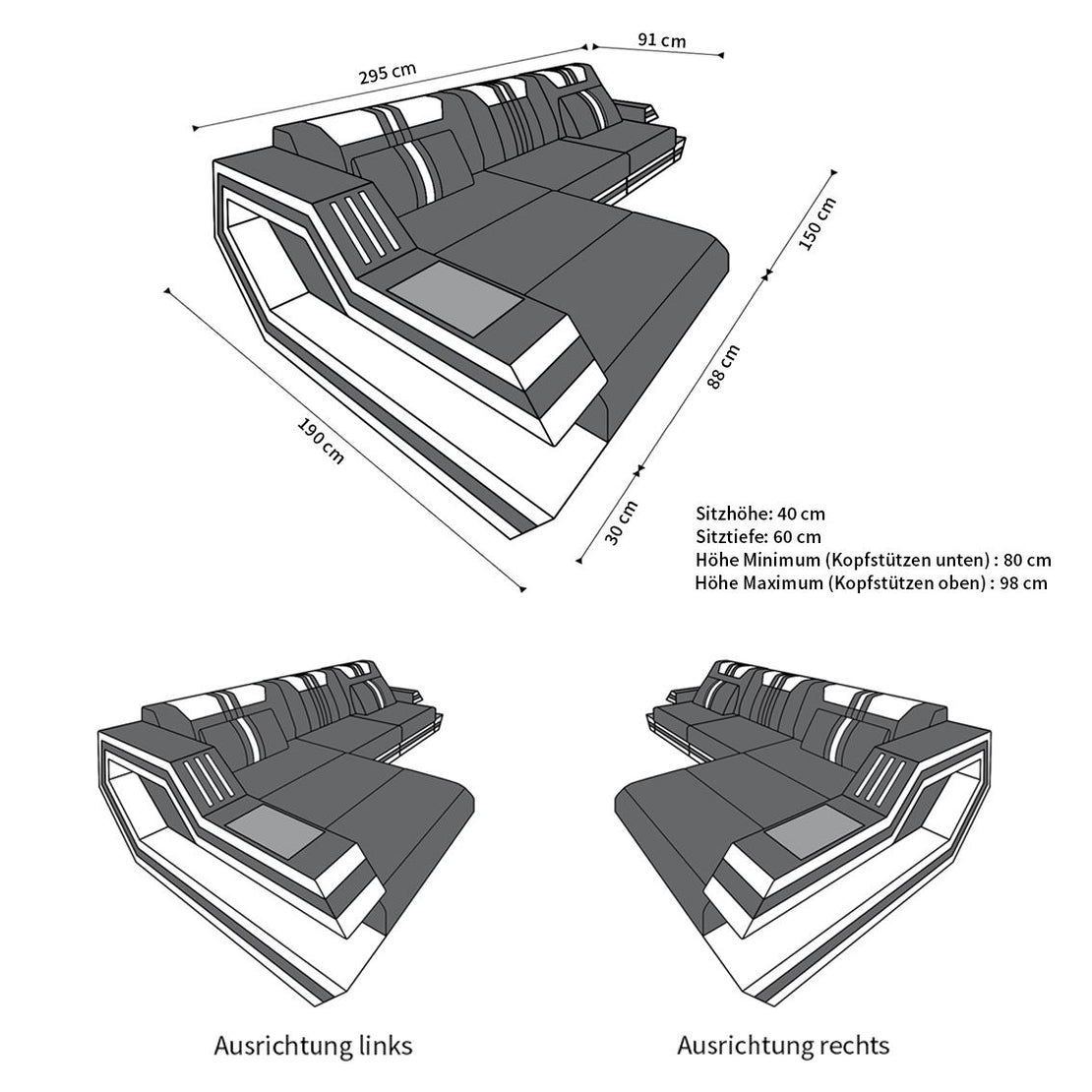 Polstersofa Materialmix Ravenna L-Form LED – Design Sofa mit Komfort